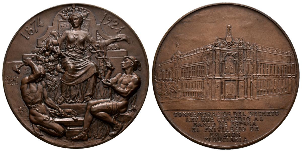 ALFONSO XIII (1885-1931). 50 Aniversario de Emisión Fiduciaria del Banco de España 1874-1924. (Ae. 93,13g/60mm). 1924. Madrid. Grabador: Lorenzo Coullaut Valera. (RAH 781). EBC+. Incluye estuche.