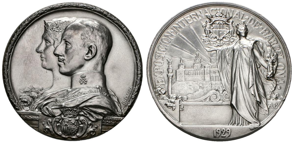 ALFONSO XIII (1886-1931). Exposición Internacional de Barcelona. (Ar. 71,31g/50mm). 1929. Grabador: A. Parera. (Crusafont 1260). EBC. Limpiada.