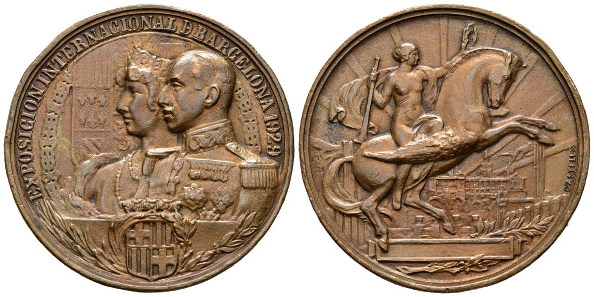 ALFONSO XIII (1885-1931). Exposición Universal de Barcelona. (Ae. 27,59g/38mm). 1929. Grabador: Castells. (Cru. Medalles 1262a) MBC+. Escasa.
