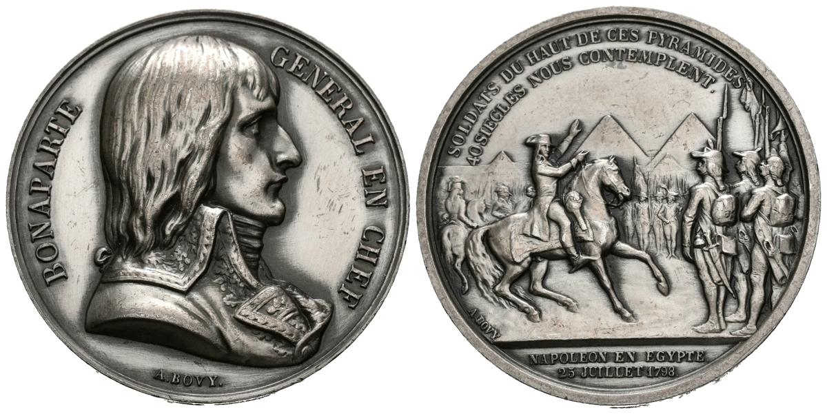 NAPOLEON BONAPARTE, Emperador (1804-1821). Conmemoración de la Batalla de las Pirámides en Egipto. (Bronce plateado. 39,58g/41mm). 25 de julio de 1798. Grabador: A. Bovy. (Ess.769). EBC-.