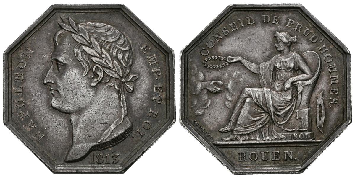 NAPOLEON BONAPARTE, Imperio (1804-1815). Conseil de Prud´Hommes. (Ar. 14,96g/33mm). 1813. Rouen. Medalla o jetón octogonal. (Bramsen 1312). MBC+.