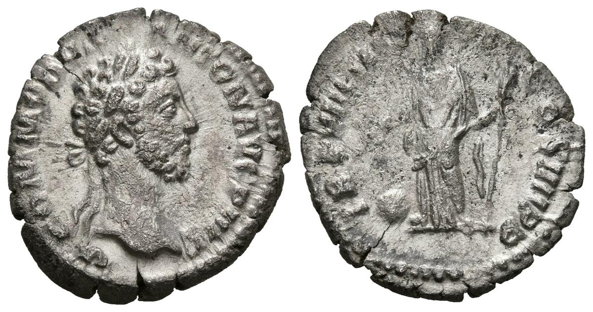 COMODO. Denario. (Ar. 2,22g/19mm). 183 d.C. Roma. (RIC 65). Anv: Busto laureado de Cómodo a derecha, alrededor leyenda: M COMMODVS ANTON AVG PIVS. Rev: Providentia estante a izquierda sosteniendo vara sobre globo y portando cetro, alrededor leyenda: TR P VIII IMP V COS IIII P P. MBC.