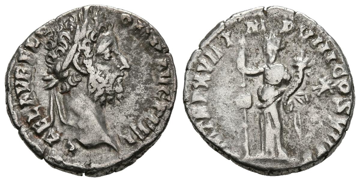 COMODO. Denario. (Ar. 2,84g/17mm). 192 d.C. Roma. (RIC 233). Anv: Busto laureado a derecha, alrededor leyenda: L AEL AVREL COMM AVG P FEL. Rev: Fides estante a izquierda portando estandarte y cornucopia, detrás estrella, alrededor leyenda: P M TR P XVII IMP VIII COS VII P P. MBC.