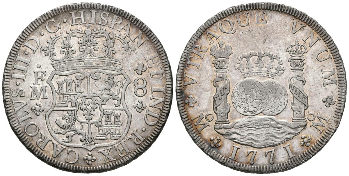 CARLOS III (1759-1788). 8 Reales. (Ar. 26,93g/38mm). 1771. México. FM. (Cal-2019-1103). EBC+. Brillo original. Extraordinario ejemplar.