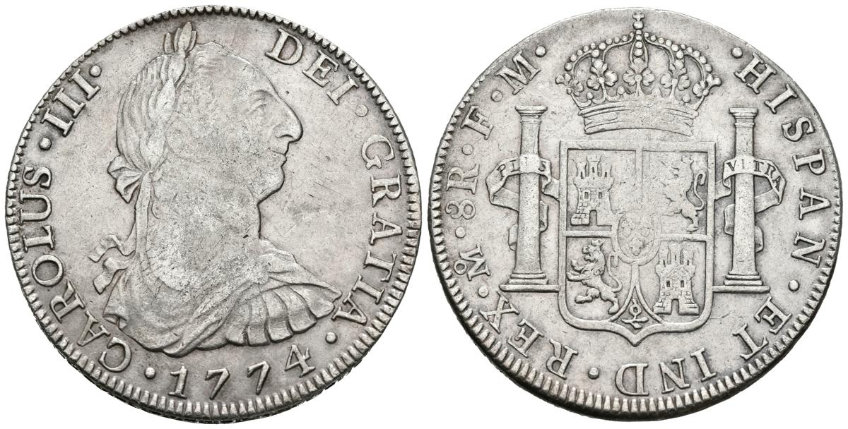 CARLOS III (1759-1788). 8 Reales. (Ar. 26,86g/39mm). 1774. México. FM. (Cal-2019-1108). MBC.