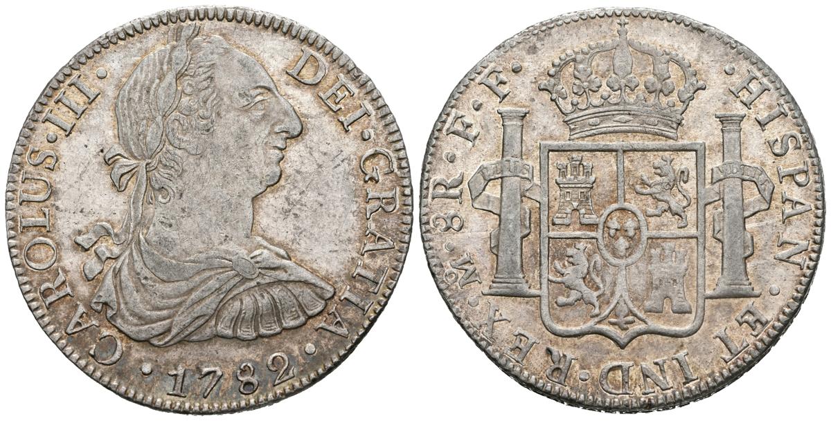 CARLOS III (1759-1788). 8 Reales. (Ar. 27,00g/39mm). 1782. México. FF. (Cal-2019-1122). EBC+. Golpecito en el canto. Restos de brillo original. Precioso ejemplar.