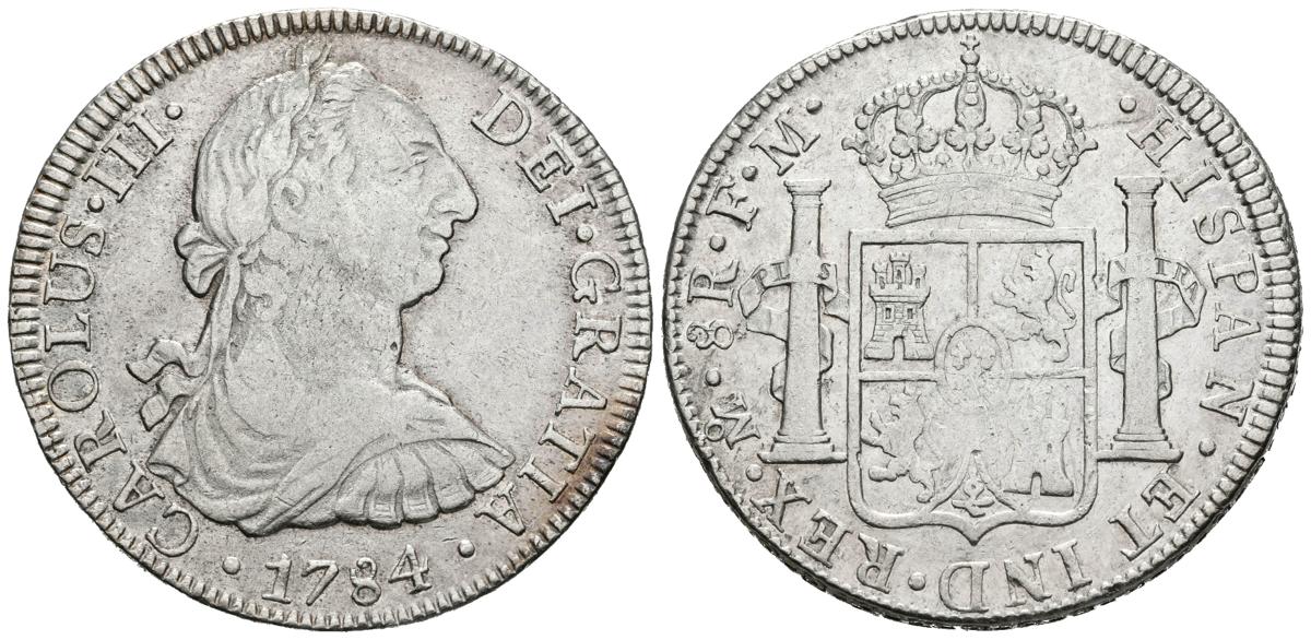 CARLOS III (1759-1788). 8 Reales. (Ar. 26,97/39mm). 1784. México. FM. (Cal-2019-1126). MBC. Limpiada