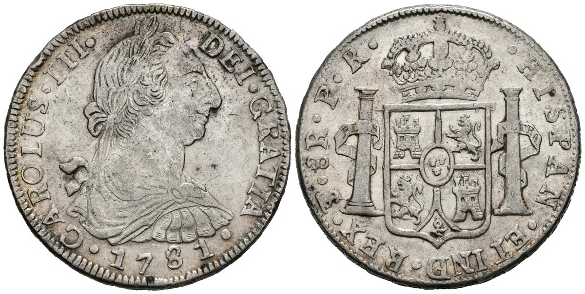 CARLOS III (1759-1788). 8 Reales. (Ar. 27,11/39mm). 1781. Potosí. JR. (Cal-2019-1180). MBC+