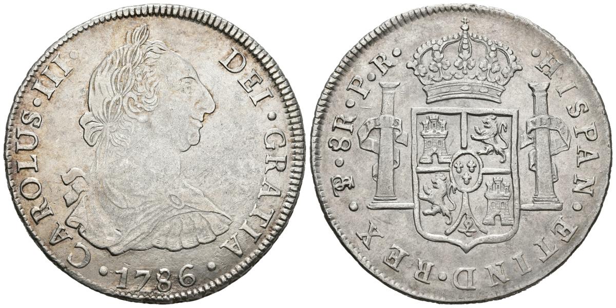 CARLOS III (1759-1788). 8 Reales. (Ar. 26,66/42mm). 1786. Potosí. JR. (Cal-2019-1192). MBC+. Rayitas de limpieza.