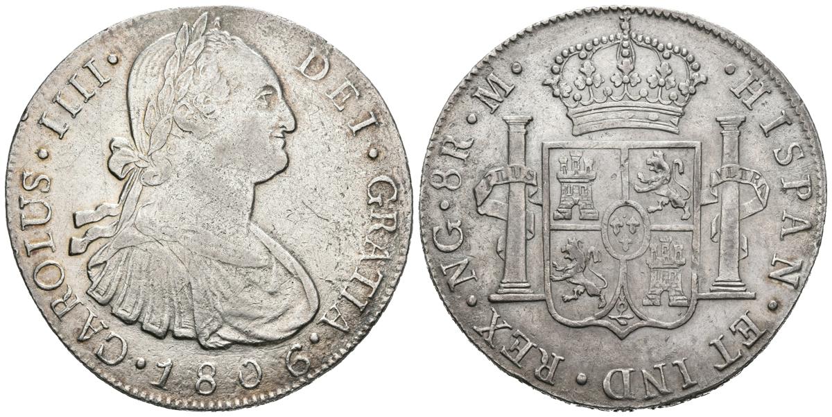 CARLOS IV (1788-1808). 8 Reales. (Ar. 26,48/39mm). 1806. Guatemala. M. (Cal-2019-901). MBC+. Oxidaciones limpiadas.