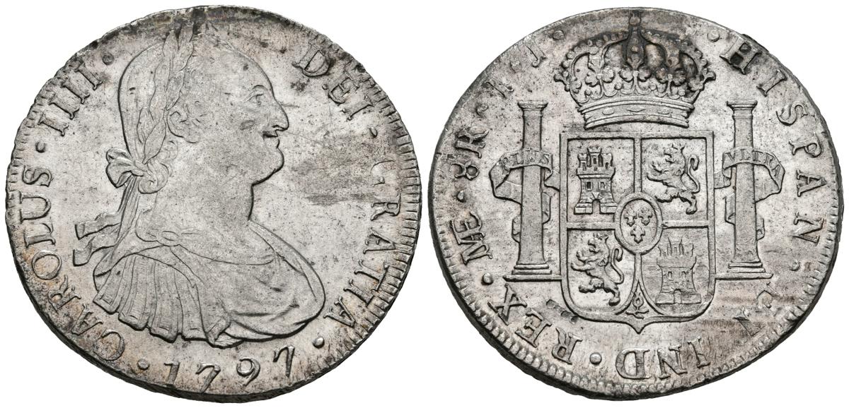 CARLOS IV (1788-1808). 8 Reales. (Ar. 27,03/40mm). 1797. Lima. IJ. (Cal-2019-915). EBC-. Muesca en reverso. Restos de brillo original.