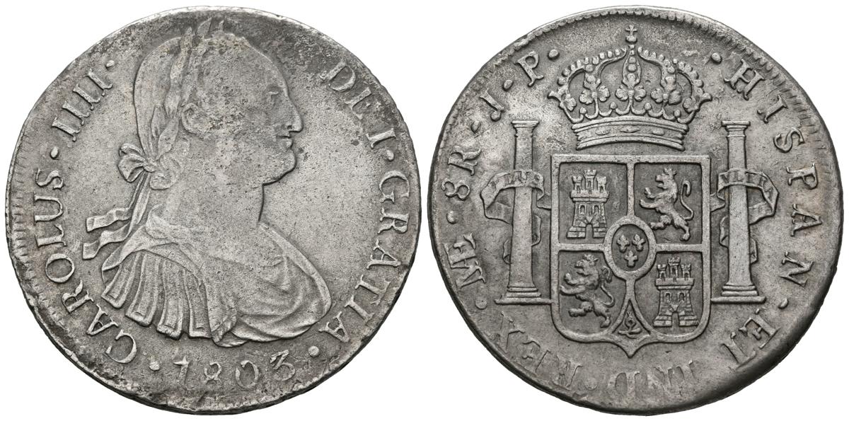 CARLOS IV (1788-1808). 8 Reales. (Ar. 26,46/39mm). 1803. Lima. JP. (Cal-2019-923). MBC+.