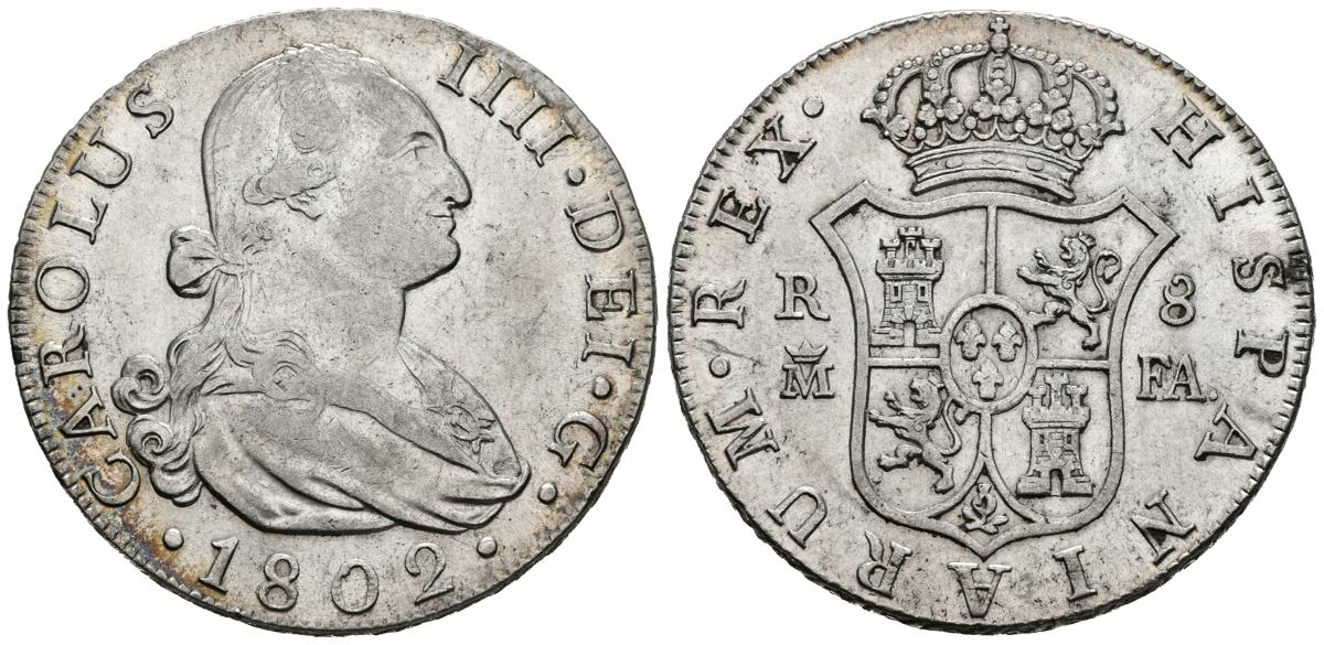CARLOS IV (1788-1808). 8 Reales. (Ar. 26,96g/39mm). 1802. Madrid. FA. (Cal-2019-939). EBC-. Bonito ejemplar.