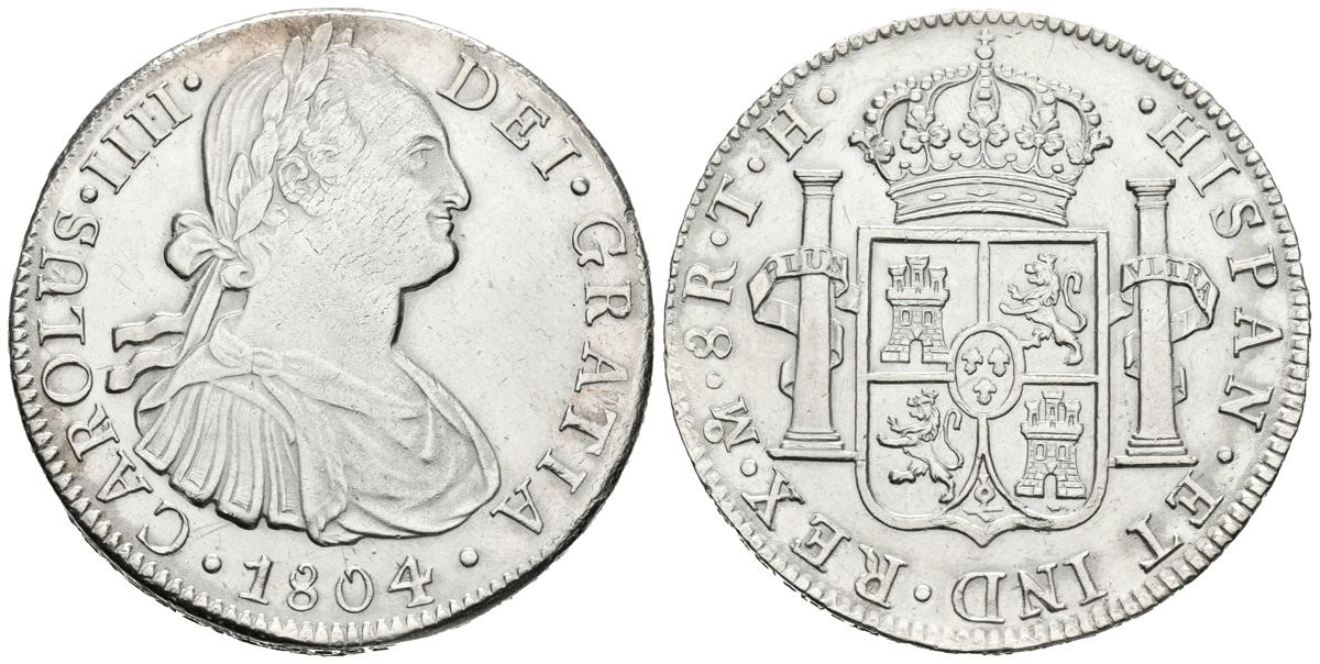 CARLOS IV (1788-1808). 8 Reales. (Ar. 26,95/39mm). 1804. México. TH. (Cal-2019-980). EBC+. Limpiado.