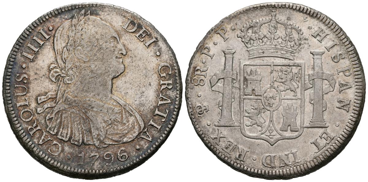 CARLOS IV (1788-1808). 8 Reales. (Ar. 26,82/41mm). 1796. Potosí. PP. (Cal-2019-1000). MBC+.