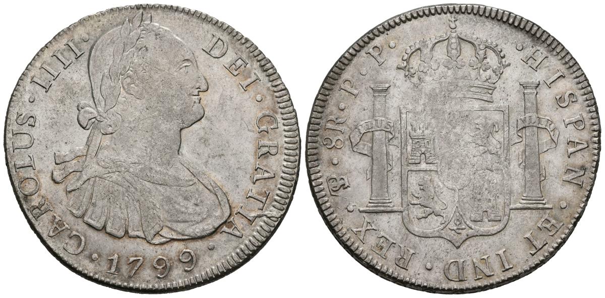 CARLOS IV (1788-1808). 8 Reales. (Ar. 26,97/41mm). 1799. Potosí. PP. (Cal-2019-1003). MBC+/MBC.