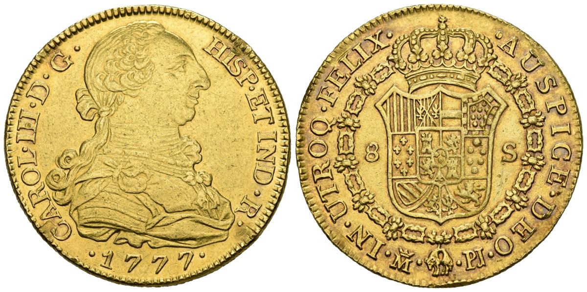 CARLOS III (1759-1788). 8 Escudos. (Au. 27,03g/36mm). 1777. Madrid PJ. (Cal-2019-1964). EBC-.