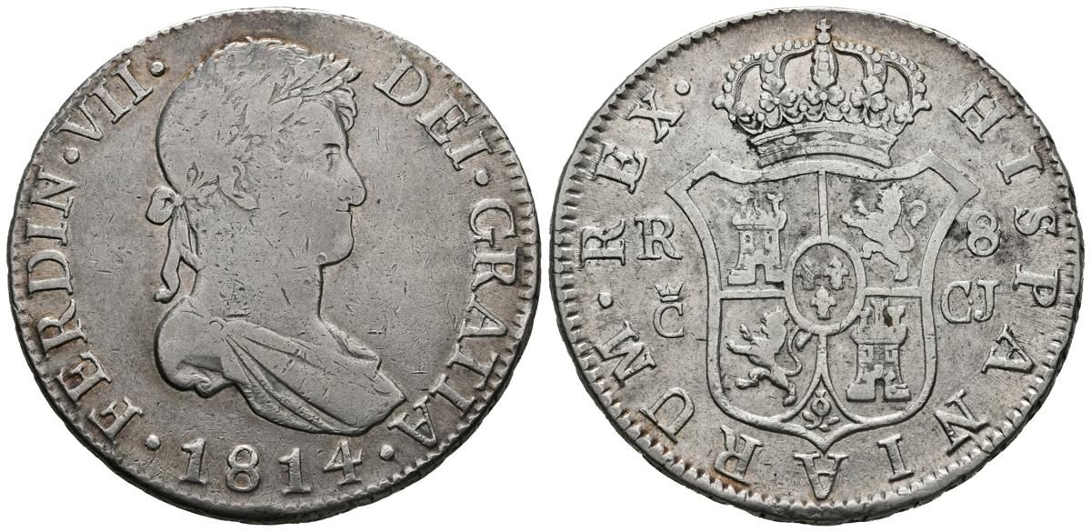 FERNANDO VII (1808-1833). 8 Reales. (Ar. 27,23g/39mm). 1814. Cádiz. CJ. (Cal-2019-1154). MBC-.