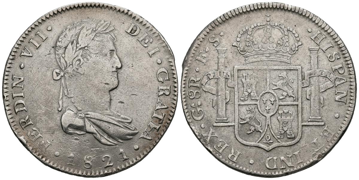 FERNANDO VII (1808-1833). 8 Reales. (Ar. 26,56g/41mm). 1821. Guadalajara. FS. (Cal-2019-1210). MBC. Limpiada.