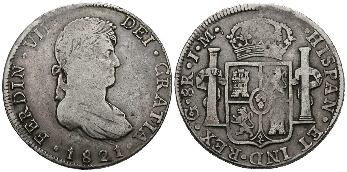 FERNANDO VII (1808-1833). 8 Reales. (Ar. 26,94g/39mm). 1821. Guanajuato. JM. (Cal-2019-1217). MBC-.