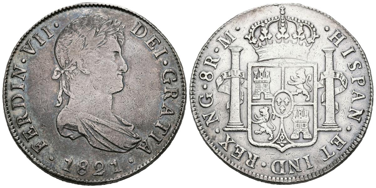 FERNANDO VII (1808-1833). 8 Reales. (Ar. 26,88g/39mm). 1821. Guatemala. M. (Cal-2019-1236). Busto propio. MBC. Pátina oscura. Abrillantada.