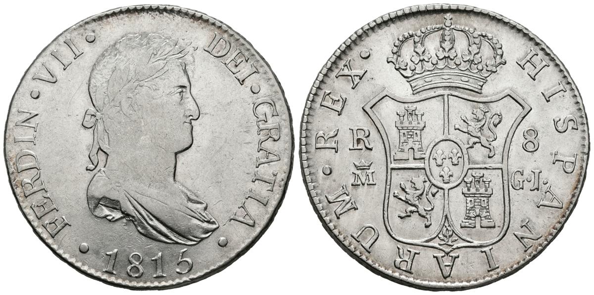 FERNANDO VII (1808-1833). 8 Reales. (Ar. 26,88g/39mm). 1815. Madrid. GJ. (Cal-2019-1269). MBC+/EBC-. Rayitas de limpieza. Escasa.