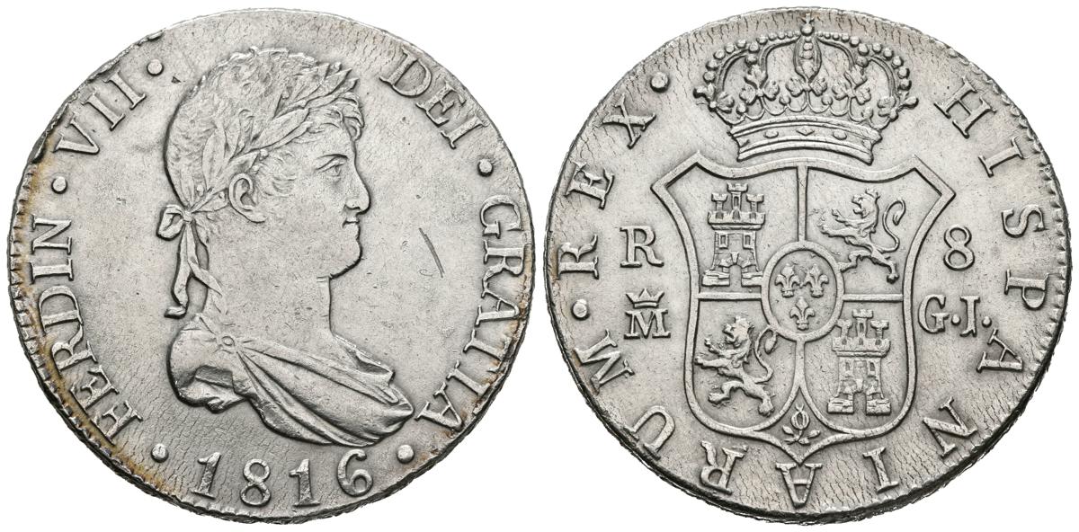 FERNANDO VII (1808-1833). 8 Reales. (Ar. 26,78g/39mm). 1816. Madrid. GJ. (Cal-2019-1270). EBC. Rayitas. Magnífico ejemplar.