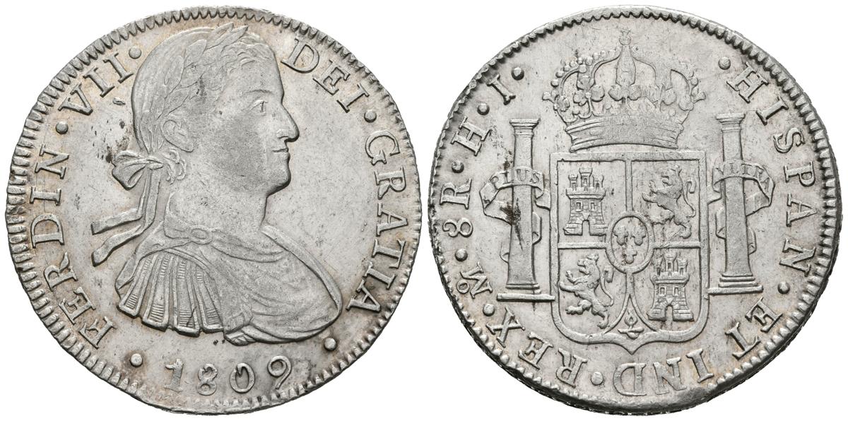 FERNANDO VII (1808-1833). 8 Reales. (Ar. 26,92g/40mm). 1809. México. HJ. (Cal-2019-1310). Busto imaginario. EBC-.