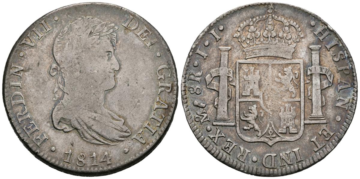 FERNANDO VII (1808-1833). 8 Reales. (Ar. 26,83g/39mm). 1814. México JJ. (Cal-2019-1326). MBC-. Bonito tono irisado.