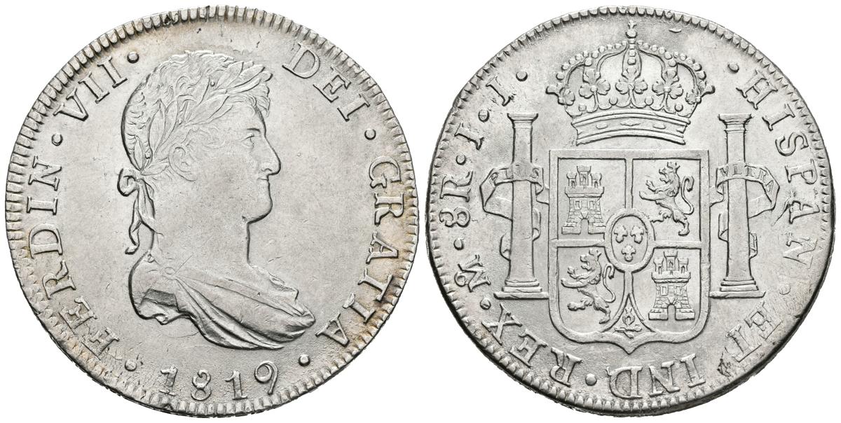 FERNANDO VII (1808-1833). 8 Reales. (Ar. 26,91g/39mm). 1819. México. JJ. (Cal-2019-1334). Busto laureado. EBC. Limpiada.