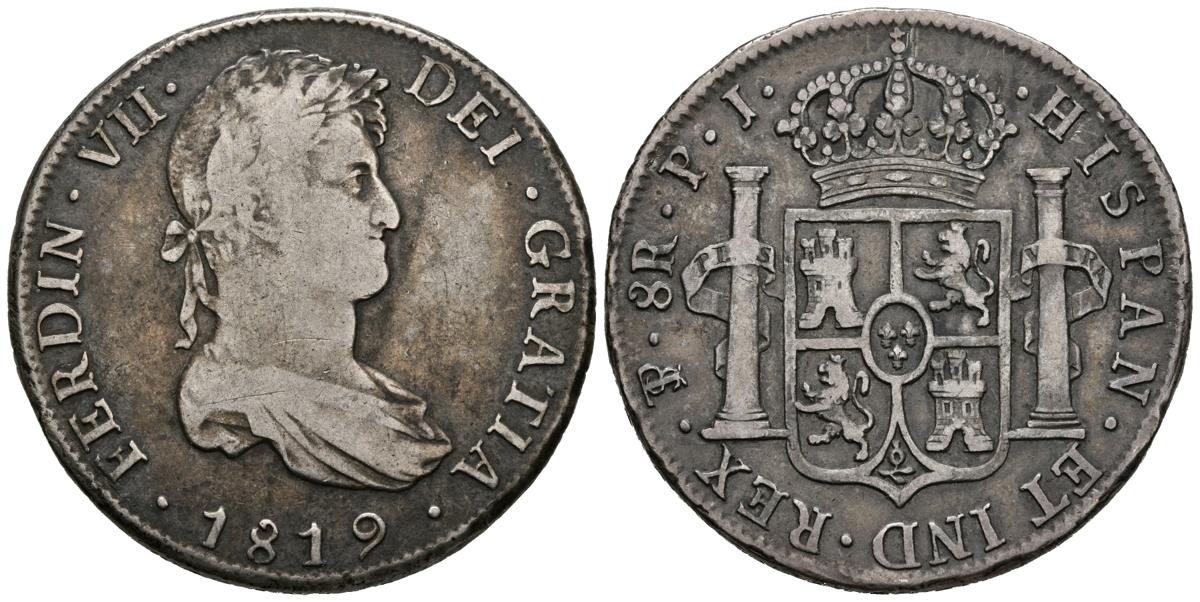 FERNANDO VII (1808-1833). 8 Reales. (Ar. 26,54g/38mm). 1819. Potosí. PJ. (Cal-2019-1383). MBC-.