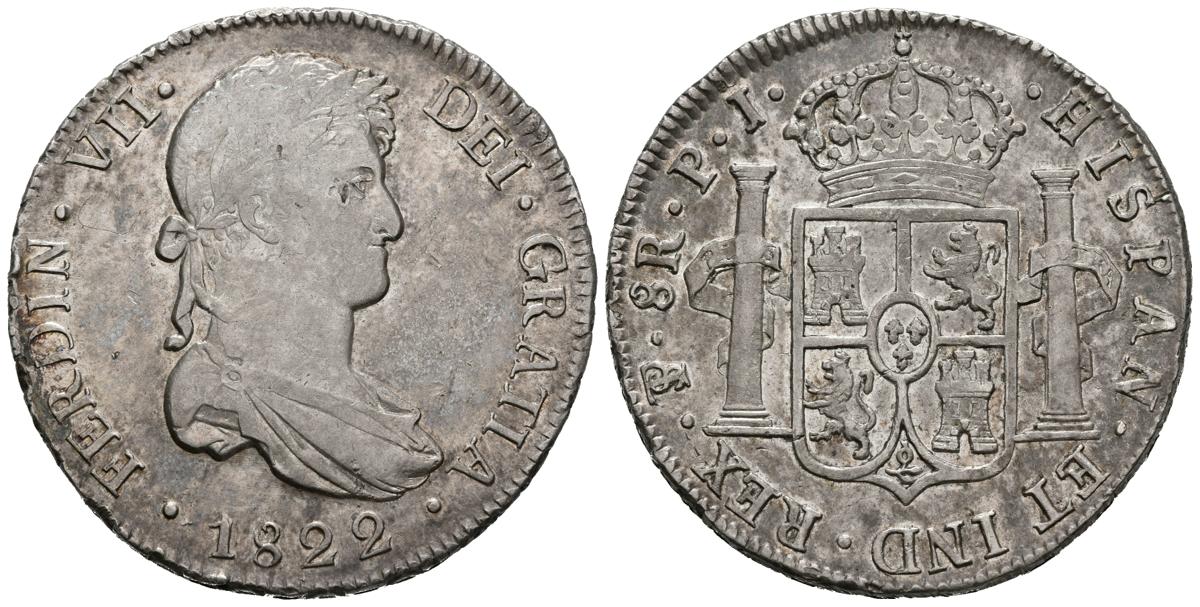 FERNANDO VII (1808-1833). 8 Reales. (Ar. 26,94g/38mm). 1822. Potosí. PJ. (Cal-2019-1386). MBC+.