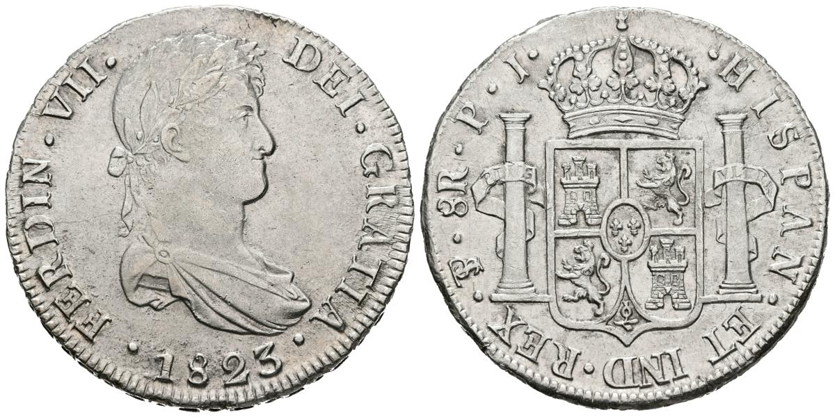 FERNANDO VII (1808-1833). 8 Reales. (Ar. 27,01g/38mm). 1823. Potosí. PJ. (Cal-2019-1388). EBC-. Rayitas de limpieza. Escasa.