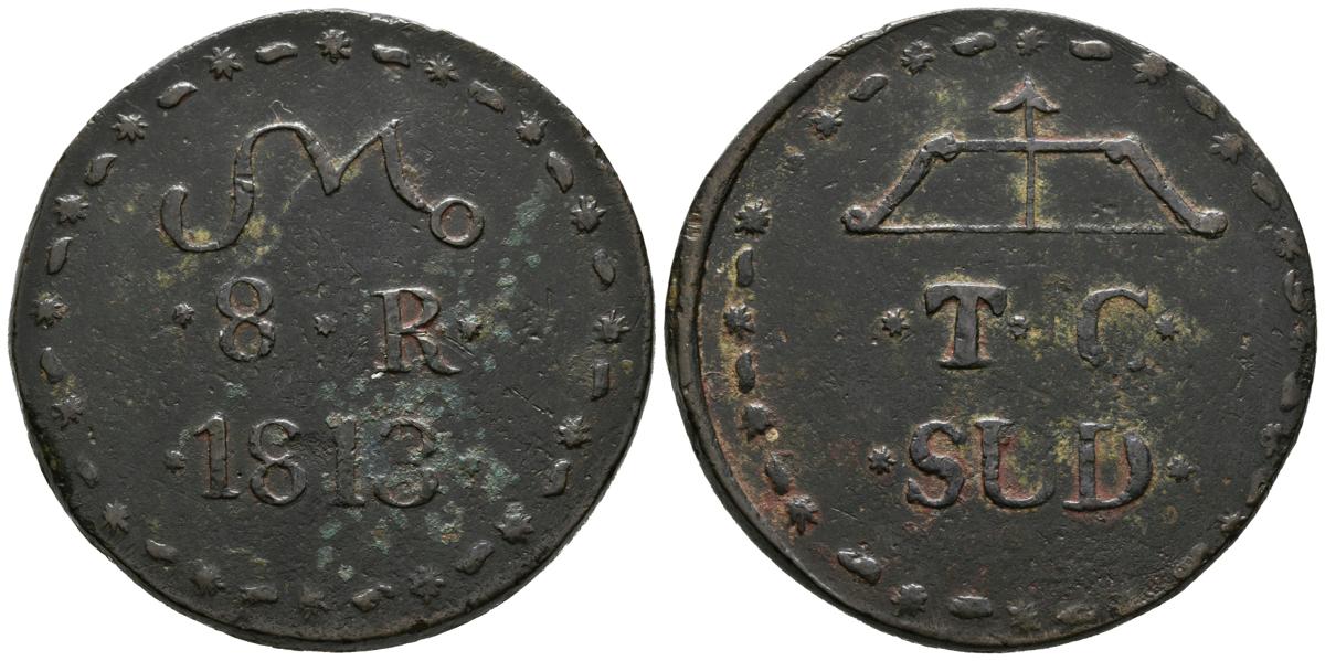 FERNANDO VII (1808-1833). 8 Reales. (Ae. 27,92g/41mm). 1813. Tierras Calientes. (Cal-2019-1431). Acuñada por los insurgentes. MBC+. Escasa.