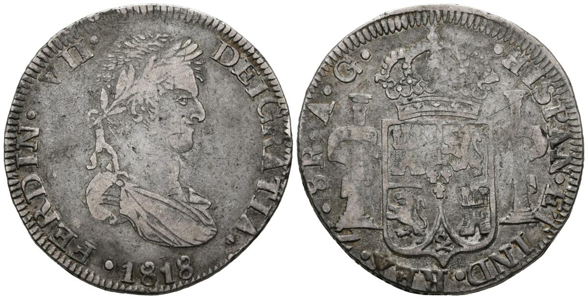 FERNANDO VII (1808-1833). 8 Reales. (Ar. 25,73g/38mm). 1818. Zacatecas. AG. (Cal-2019-1459). Primer busto propio. MBC-.