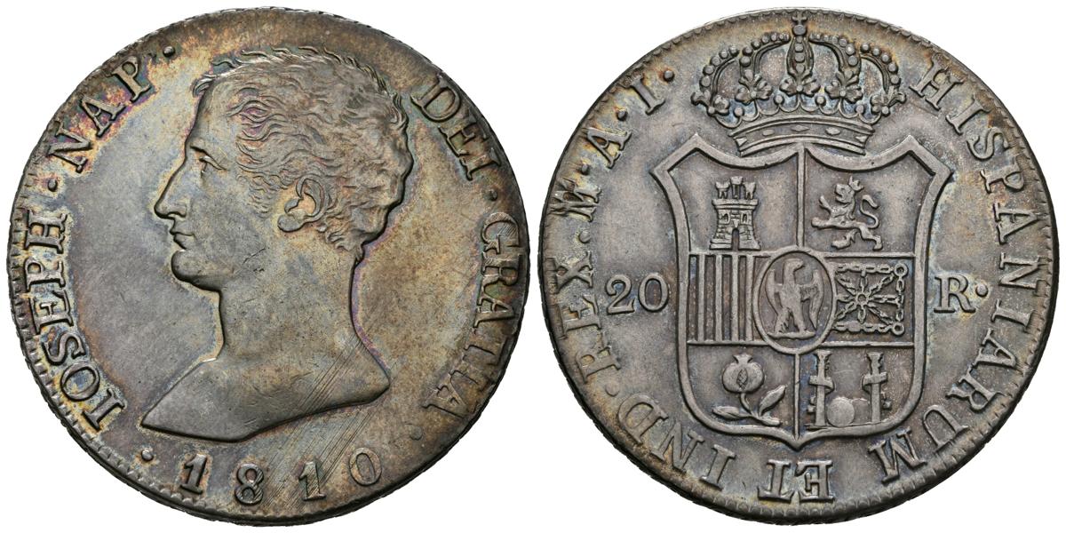 JOSE NAPOLEON (1808-1813). 20 Reales. (Ar. 26,78g/40mm). 1810. Madrid. AI. Aguila grande. (Cal-2019-37). EBC. Preciosa pátina