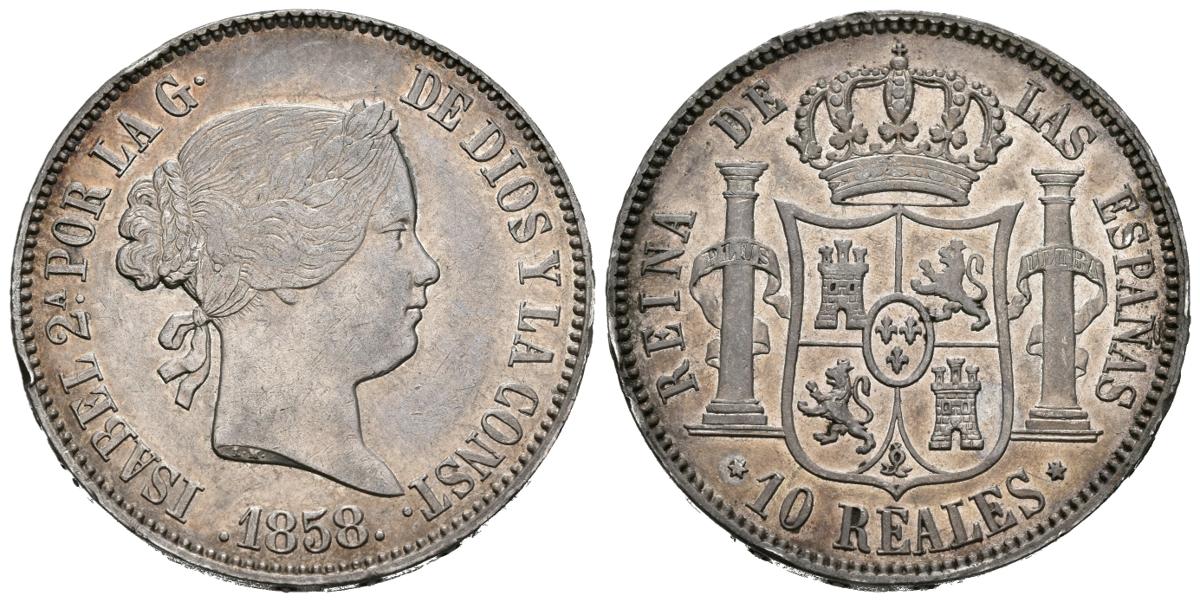 ISABEL II (1833-1868). 10 Reales. (Ar. 12,87g/30mm). 1858. Madrid. (Cal-2019-535). EBC-/EBC. Precioso tono irisado.