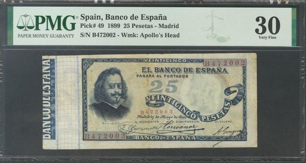 25 Pesetas. 17 de Mayo de 1899. Serie B. (Edifil 2017: 306a). Mínimas reparaciones. MBC. Encapsulado PMG30.
