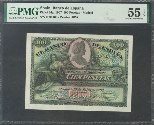 100 Pesetas. 15 de Julio de 1907. Sin serie. (Edifil 2017: 320). EBC+. Encapsulado PMG55EPQ.