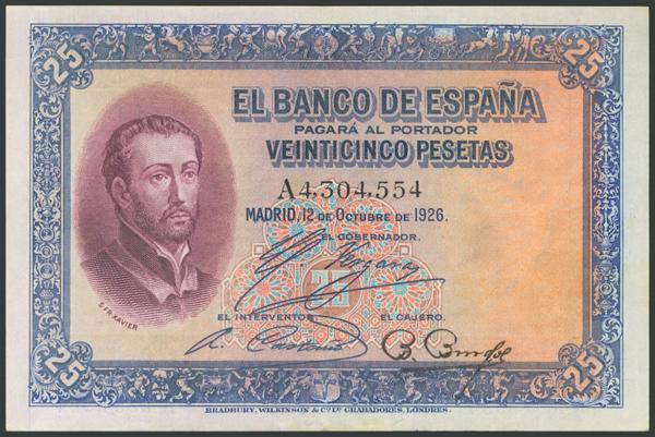 25 Pesetas. 12 de Octubre de 1926. Serie A. (Edifil 2017: 325a). Presenta parte del apresto original, inusual así. EBC-.