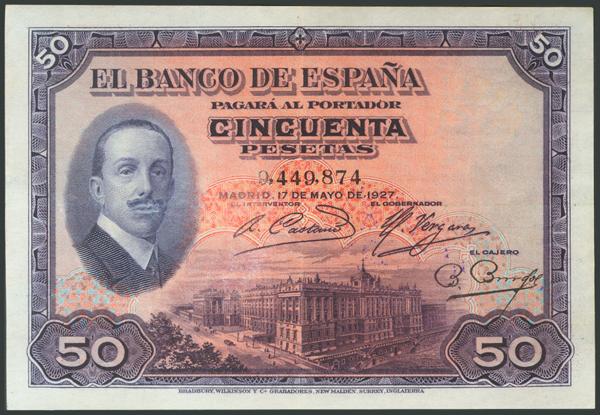 50 Pesetas. 17 de Mayo de 1927. Sin serie. (Edifil 2017: 326). MBC.