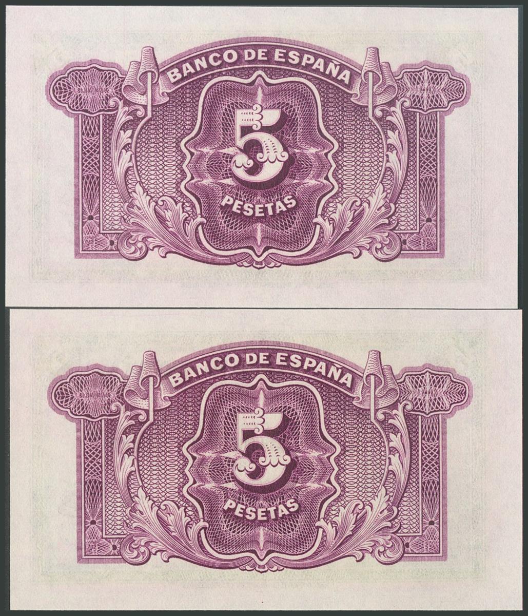 5 Pesetas. 1935. Pareja correlativa. Certificado de Plata. Serie K. (Edifil 2017: 363b). Conserva todo su apresto original. SC.