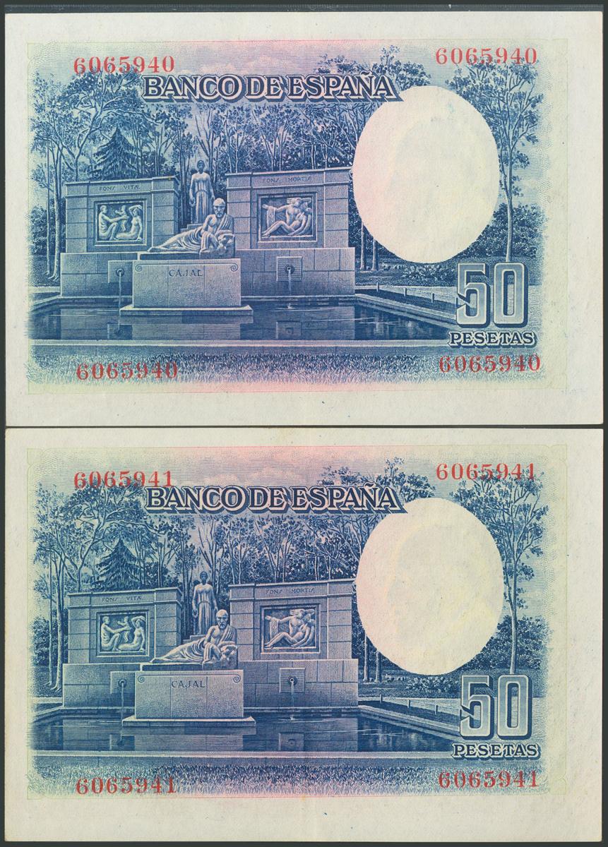 50 Pesetas. 22 de Julio de 1935. Pareja correlativa. Sin serie. (Edifil 2017: 366a). Apresto original. EBC+.