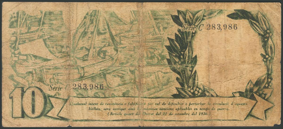 10 Pesetas. 26 de Septiembre de 1936. Generalitat de Catalunya. Serie C. (Edifil 2017: 374). RC.