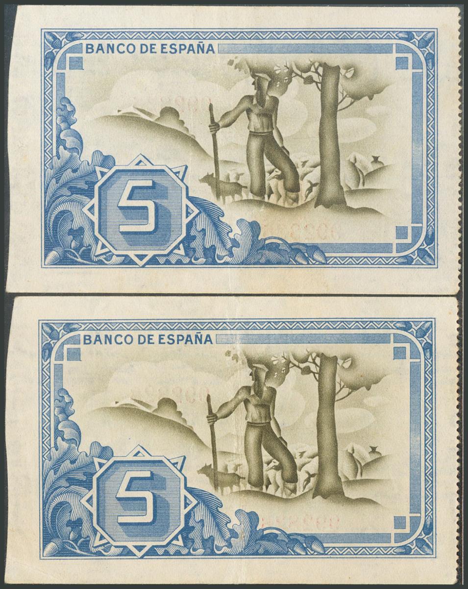 5 Pesetas. 1 de Enero de 1937. Pareja casi correlativa. Sin serie y con la antefirma Banco de Vizcaya. (Edifil 2017: 385f). EBC-.