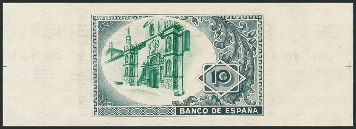 10 Pesetas. 1 de Enero de 1937. Sucursal de Bilbao, antefirma Banco de Vizcaya. Sin serie y sin numeración, con ambas matrices. (Edifil 2017: 387b). SC.