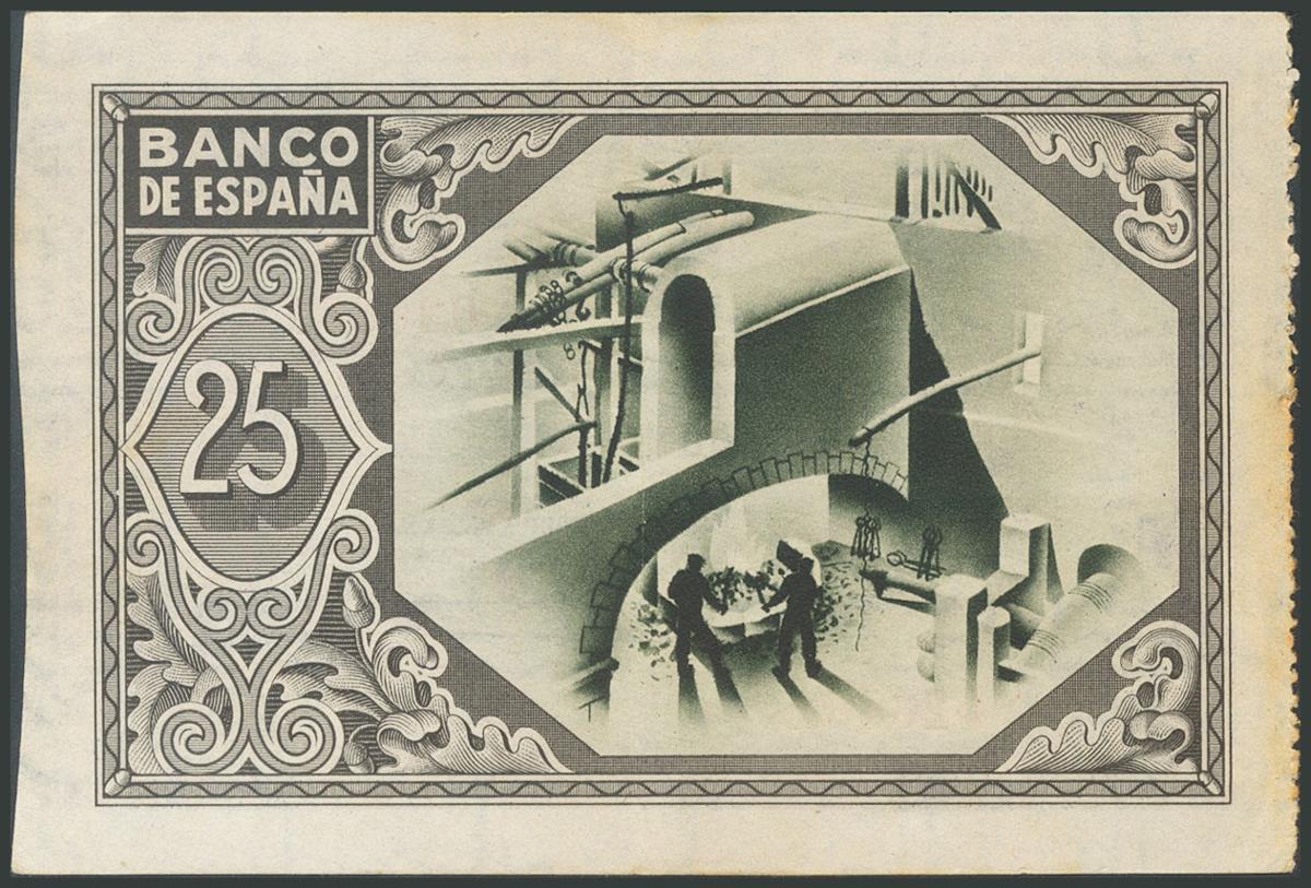 25 Pesetas. 1 de Enero de 1937. Sucursal de Bilbao, con la antefirma Caja de Ahorros Vizcaína. (Edifil 2017: 388a). EBC.