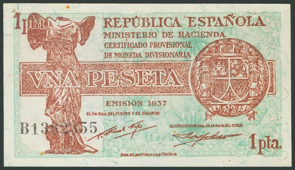 1 Peseta. 1937. Serie B. (Edifil 2017: 392). Apresto original y puntitos del tiempo. EBC+.