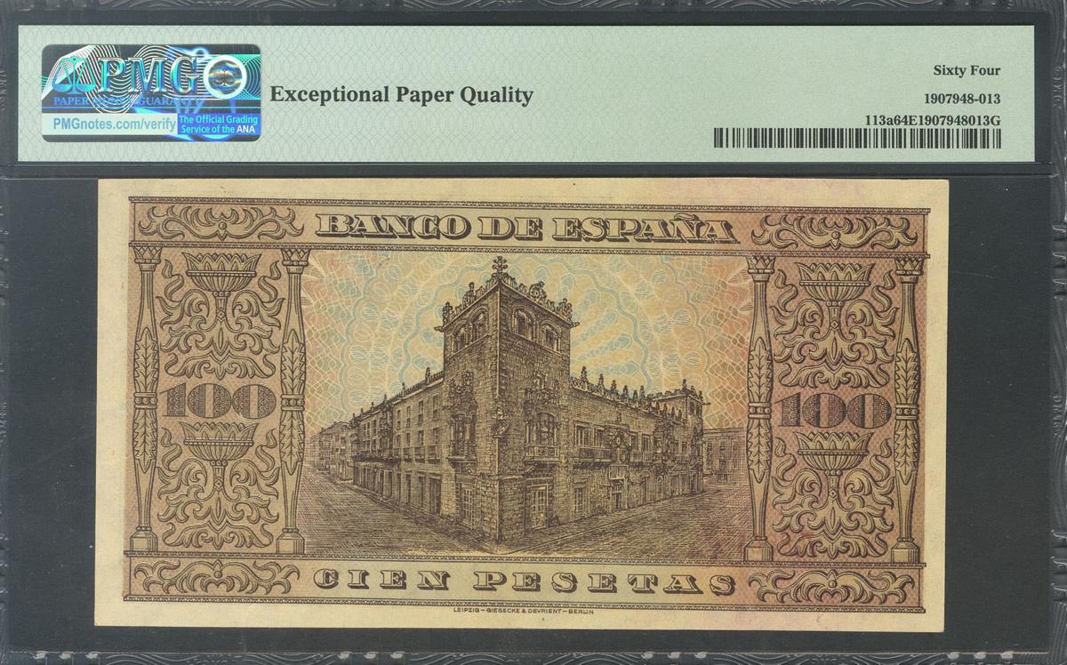 100 Pesetas. 20 de Mayo de 1938. Serie A. (Edifil 2017: 432). Conserva todo su apresto original. SC. Encapsulado PMG64EPQ.