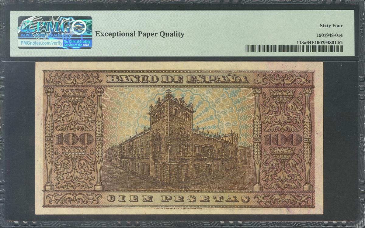 100 Pesetas. 20 de Mayo de 1938. Serie F. (Edifil 2017: 432a). Conserva todo su apresto original. Encapsulado PMG64EPQ.